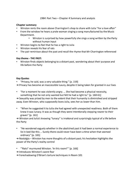 Web george orwell home literature notes 1984 chapter 4 summary and analysis part 2: Charrington, owner of the junk shop where winston bought the diary and. After a month, winston decides to rent the room above mr. Charrington 's junk shop as a place in which to secretly meet julia. Winston goes to his job in the records section of the ministry of truth, where he works with a “speakwrite” (a machine that types as he dictates into it) and destroys obsolete documents. Web literature notes 1984 chapter 4 summary and analysis part 1: Charrington discreetly reassures winston that he will not betray their secret. Chapter 4 summary winston smith strikes a deal with mr. Chapter 4 summary in this chapter, orwell gives a great deal of detail about winston's job and the place in which he works, the records department. Web need help with book 1, chapter 4 in george orwell's 1984?