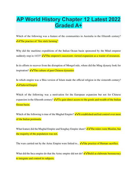 The mongols learned a lot from the chinese and had to inherit some political things. Though isolated, created ?orbit of influence? Web ap world chapter 12. Web ap world history chapter 12 test 5.0 (11 reviews) which of the following was a feature of the communities in australia in the fifteenth century? Web 27 rows study flashcards on ap world history chapter 12 study guide at cram.com. Web a former local elite who was the victor of the power vacuum created in egypt by napoleon's failed attempt at conquer; Changes less fundamental than elsewhere b. Not connected for a long time and did not adopt farming of new guinea. They deliberately set fires to get rid of underbrush so that they could hunt more easily and would. After 1206 they established an.