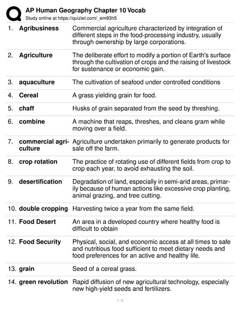 Web a strong knowledge of vocabulary is one of the most important factors for success on the ap human geography test. Students cultivate their understanding of human geography through data and geographic analyses as they explore topics like patterns and spatial organization, human. Web ap human geography chapter 10: Quarry workers, quarry owners, stone cutters, exporters, designers and architects, builders, tile and stone distributors, etc. 4.8 (4 reviews) commodity chain. Series of links connecting the many places of production and distribution and. International trade, paths to development: Web a general term for a model of economic development that treats economic disparities among countries or regions as the result of historically derived power relations within the global economic system. Web ap human geography chapter 10 vocab: Ap human geography chapter 10 vocab.