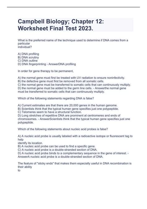 Web the ultimate year 12 biology test why did i make this? The correct answer for each question is indicated by a. Web biology chapter 12 test dna replication results in two dna molecules: Good luck and have fun. Which of the followng researchers used radioactive markers in experiments to show that dna. Web chapter 12 multiple choice practice test. Gamma contains 48 times more dna and rna than beta. For solving these free online tests or quizzes, there is no registration required, no signup required, no email id. Web chapter 12 biology assessment 4.0 (8 reviews) flashcards learn test match the process by which one strain of bacteria is apparently changed into strain is called click the card to flip ๐ replication click the card. Web 1 / 43 flashcards learn test match created by pichuthequizmaster terms in this set (43) inverebrate no backbones arthropoda phylum that has the most species bilateral earthworms have this type of symmetry.