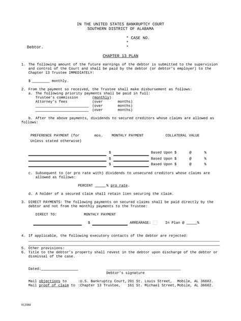 Required forms for filing under a particular chapter, such as chapter. If the fee is to be paid in installments, the debtor must file a signed application for court approval. Web chapter 13 trustee. You create a payment plan where you use your post bankruptcy income. Consolidate your debt to save with one lower monthly payment. This ties up your cash over the chapter 13 plan period. Legal fees are higher since a chapter 13. Web disadvantages to a alabama chapter 13 payment plan: Web chapter 13 forms. Helpful answers to frequently asked questions. Official bankruptcy forms must be used to file and take action in bankruptcy cases.