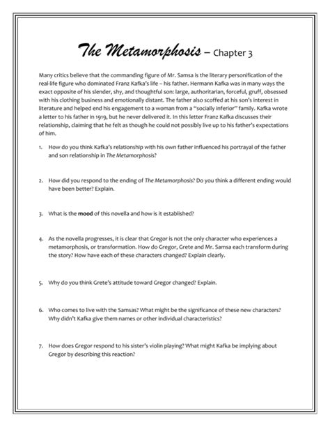 Web read chapter 3 of the metamorphosis. What questions arise as you go? In chapter 2 of the metamorphosis,. Web get an answer for 'read chapter 3 of the metamorphosis. Web read chapter iii of the metamorphosis by franz kafka. Web 12 lessons in chapter 3: The next chapter, chapter 4 is also available here. Web chapter iii gregor's severe wound, from which he suffered for over a month—the apple remained in his flesh as a visible. Web when they no longer have to think about the burden of caring for him, their sympathy returns. Web a summary of part 3 in franz kafka's the metamorphosis. The serious injury done to gregor, which disabled him.