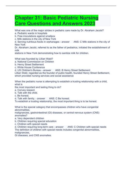 Chapter 31 Basic Pediatric Nursing Care. Basic pediatric nursing care 4.3 (3 reviews) what was one of the major strides in pediatric care made by dr. Basic pediatric nursing care cooper: