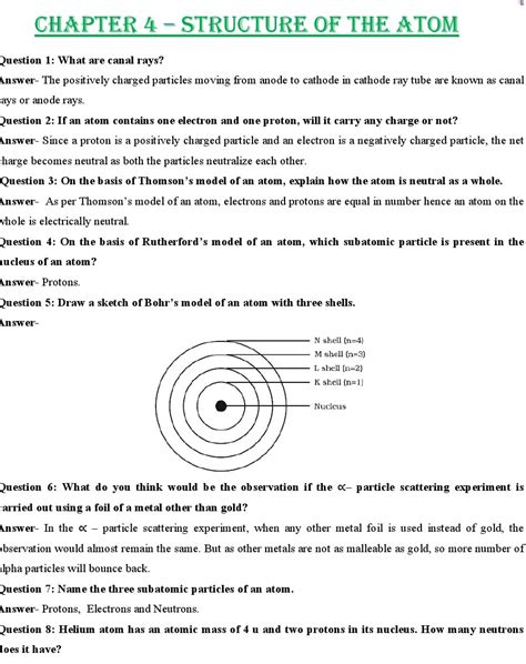 Chapter 4 The Structure Of The Atom. The mass of an atom is the sum of the masses of protons and neutrons present in. Web class 9 science chapter 4 describes the structure of the atom.
