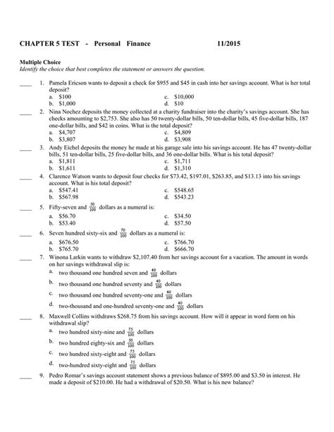 Chapter 5 Personal Finance Test. Web you can create printable tests and worksheets from these grade 5 personal finance questions! Higher returns on savings will usually result in less liquidity.