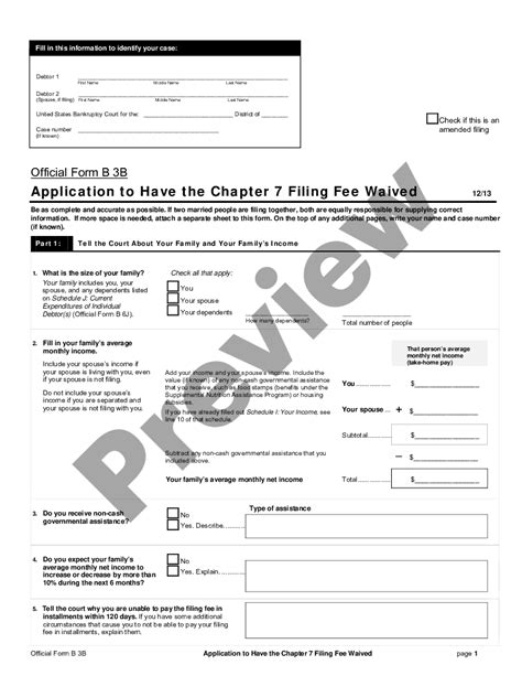 What is the size of your family? Has income less than 150 percent of the income official poverty line applicable. Web you will have to file for chapter 7 bankruptcy with the proof that you are unable to pay the fee in installments within 120 days to discover if you are qualified for a fee waiver. Introduction to general financial requirements. • the income for comparison to the poverty guidelines is the total combined. During this process, you will be. Web the court fee for filing a case under chapter 7 of the bankruptcy code is $299. Web application to have the chapter 7 filing fee waived (superseded) download form (pdf, 133.23 kb) form number: Web applications to waive the filing fee in chapter 7 cases shall be submitted on the official bankruptcy form “application to have the chapter 7 filing fee waived” in accordance with the following requirements: Download form (pdf, 141.33 kb) form number: