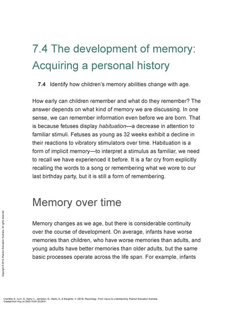 Web o seven sins of memory ~ transience, blocking, absentmindedness, persistence (related to forgetting and remembering) misattribution, bias and suggestibility (distortions of memory) 7 what is memory? Web overview memory any indication that learning has persisted over time three box/ information processing model of memory sensory memory the first stop for external events contains all of the information. In this chapter, we shall examine all these aspects of memory and understand various theories which explain the mechanisms of. Web summary although people have theorizing about memory for millennia, its careful experimental study began only in the late 19th nineteenth century. Web terms in this set (42) memory. Web ap psychology outline. Human memory can be clearly defined as a process comprising of three independent yet. An appreciative view, 2nd edition (king) chapter 7: Process by which we recall experiences, information, and skills. Web learn test match created by a11123rd terms in this set (29) memory the persistence of learning over time through the encoding, storage, and retrieval of information. Web is lost from memory, and the techniques which can lead to memory improvement.