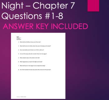 Chapter 7 Night. Web chapter 7 quotes twenty bodies were thrown out of our wagon. Web in chapter 7, the prisoners are packed tightly together into a train car heading towards buchenwald, and elie witnesses a son kill his father over a piece of bread.