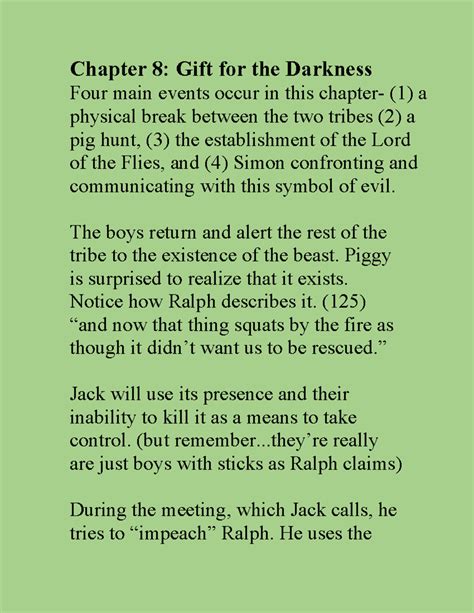 Chapter 8 Summary Lotf. He tells the others that they saw the beast. Learn exactly what happened in this chapter, scene, or section of lord of the flies and what it means.