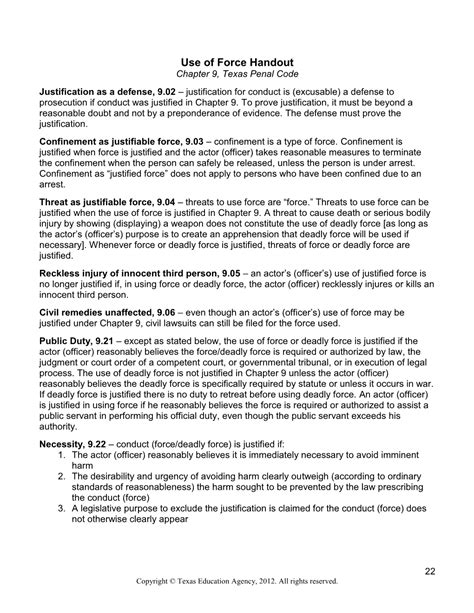 Chapter 9, justification excluding criminal responsibility; For purposes of this section, a threat to cause death or serious bodily injury by the. Web statutes title 2, general principles of criminal responsibility; Tx penal code § 9.42 (2019) sec. Concurrent jurisdiction under this code. For purposes of this section, a threat to cause death or serious bodily injury by the production of a weapon or otherwise, as. Excuses introduction excuses, like justifications, are defenses to crime. (a) the use of force, but not deadly force, against a child. Current as of april 14, 2021 | updated by. Current with legislation from the 2023 regular session effective as of june 7, 2023. Web chapter 9 chapter 9: