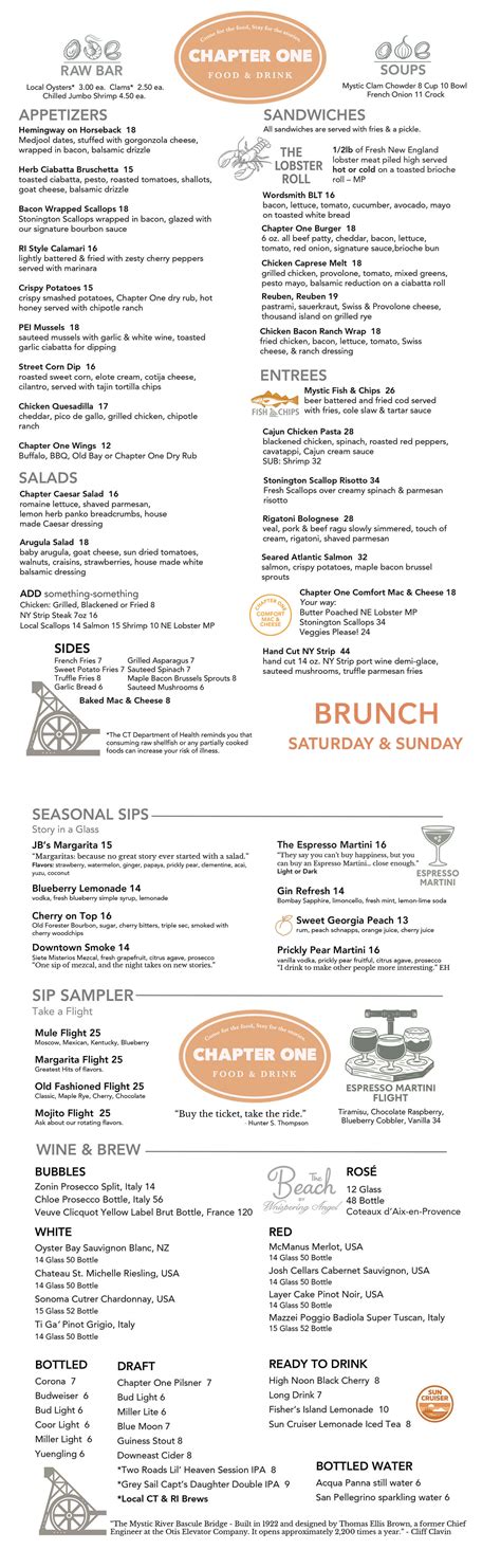 Chapter One Mystic Menu. Check out our best lists for mexican, asian or. Located in the heart of downtown mystic just past the infamous mystic drawbridge, chapter one food &.