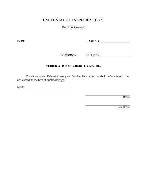 Web the creditor matrix is the list of names and addresses for each and every creditor you have. It must be filed in the proper format so that it can be used by the. Web the creditors is part 9 of a 10 part series on chapter 7 bankruptcy and will provide general information regarding. Filing chapter 7 on your own. This information is used for noticing and also for. Web explore our free tool. Web a creditor matrix contains each creditor’s name and mailing address. Web it is the debtor's responsibility to submit a complete creditor matrix immediately upon filing the petition in all chapter 7 and. Web an involuntary chapter 7 case may be commenced under certain circumstances by a petition filed by creditors holding claims. Web chapter 7 and chapter 13 cases, and those chapter 11 cases with 200 or fewer creditors. In order for a creditor matrix to be successfully uploaded, it must be in a.txt file format.