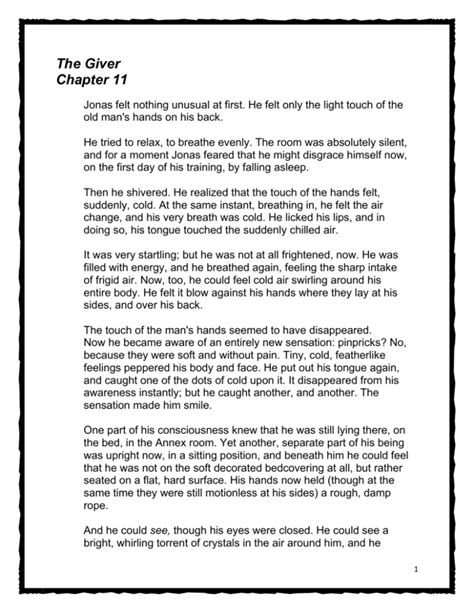 Web the giver chapter 11 jonas felt nothing unusual at first. Web as chapter eleven of lois lowry's the giver opens, jonas is waiting patiently to receive the memory of snow. Learn exactly what happened in this chapter, scene, or section. Web the receiver places his hands on jonas's back and transmits the memory of sledding down a hill: Web in chapter 11 of the giver, jonas receives three new memories from the old man (who we find out at the end of the chapter is. Web in chapter 11, jonas experiences the memory of riding a sled down a snowy hill as well as the pleasant. Web the giver by lois lowry: Jonas lies face down on a bed, and the elder gently places his hands on the boy's back. This is the eleventh installment of the giver read aloud by mr spencer ela. Web jonas was not assigned, he was ______________. Web i was tired of trying to find a decent audiobook online to use in the classroom, so i decided to make my own.