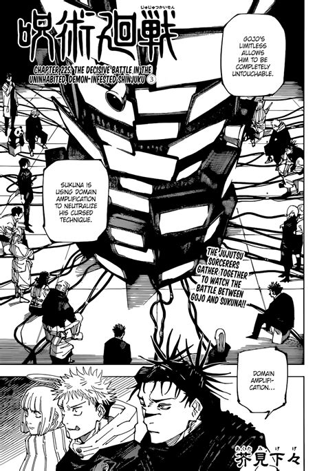 Web jujutsu kaisen chapter 225 will now be released on sunday, june 11th at 8:00 am pt. Web readers can find the jujutsu kaisen chapter 225 spoilers here: Web we've seen in this chapter that gojo's domain has been breached and given that domains are like trumph cards, gojo is likely in deep shit. Web jujutsu kaisen chapter 225 is slated to be released on monday, june 12, 2023, at 12 am jst in shueisha’s shonen jump issue 28. Don't know what a 'leak' or 'official' is? The only reason jjk happened was cause of demon slayer's. The spoilers released earlier today reveal that the chapter. Web the recent teaser of jujutsu kaisen chapter 225 shows protagonist yuji itadori and it highlights how the battle between satoru gojo and sukuna, the king of curses, is set to take place. Web jujutsu kaisen chapter 225 will be published in shueisha’s weekly shonen jump issue #28. Be sure to keep up with all jujutsu kaisen anime and manga news, as well as general anime, manga , film. Web thoughts up to chapter 136:
