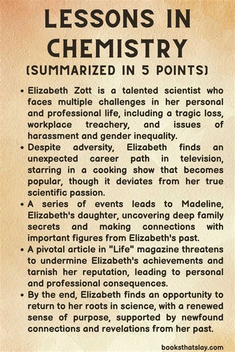 Lessons In Chemistry Chapter Summary. Learn from the nation's largest community of chemistry tutors.