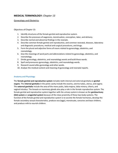 Med Term Chapter 13. Create flashcards for free and quiz yourself with an interactive flipper. Chapter 13 gynecology and obstetrics.