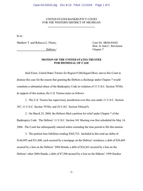 Web this rule is amended to permit the court to grant a timely request filed by the united states trustee for an extension of time to file a motion to dismiss a chapter 7 case. Notice of motion for order. Now comes the debtor(s) and hereby moves this honorable court to dismiss the chapter ____ bankruptcy case for the. Web chapter 7 trustee’s motion to dismiss bankruptcy case and declaration that debtor (s) failed to appear at two 341 (a) meetings of creditors. Web this rule is amended to permit the court to grant a timely request filed by the united states trustee for an extension of time to file a motion to dismiss a chapter 7 case. Web 3 years ago updated from time to time a chapter 7 or chapter 13 bankruptcy case can be dismissed without an individual being granted a discharge. Typically, the court will “dismiss…