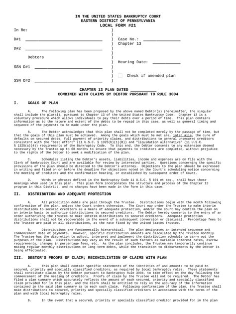 Pennsylvania Chapter 13 Plan Chapter 13 Plan US Legal Forms