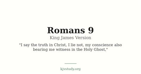 Romans Chapter 9 Kjv. Web 9 i say the truth in christ, i lie not, my conscience also bearing me witness in the holy ghost, 2 that i have great heaviness and continual sorrow in my heart. Web chapter 9 bible options | + text size — 1 i say the truth in christ, i lie not, my conscience also bearing me witness in the holy ghost, 2 that i have great heaviness.