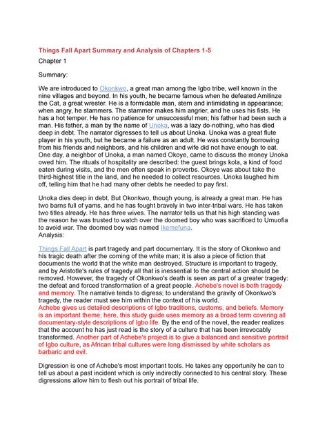 Things Fall Apart Summary Chapter 1. As a young man, okonkwo becomes one of the greatest wrestlers in the clan. Web in chapter 1, readers become acquainted with both okonkwo and the person whose behavior has shaped okonkwo's.